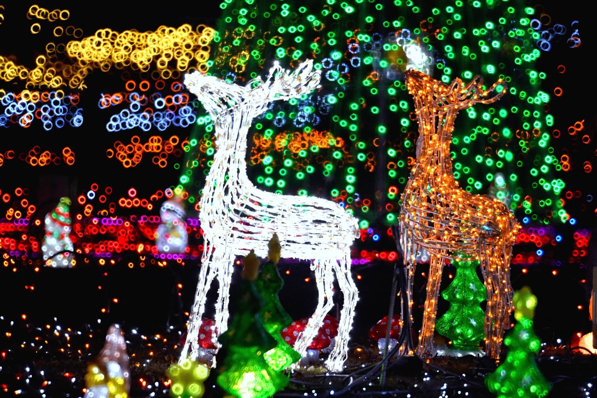 光降り注ぐステンドグラスストリート、きらめくイルミネーションゲート、メルヘンな動物やキャラクターオブジェ、映えるカフェ空間――
